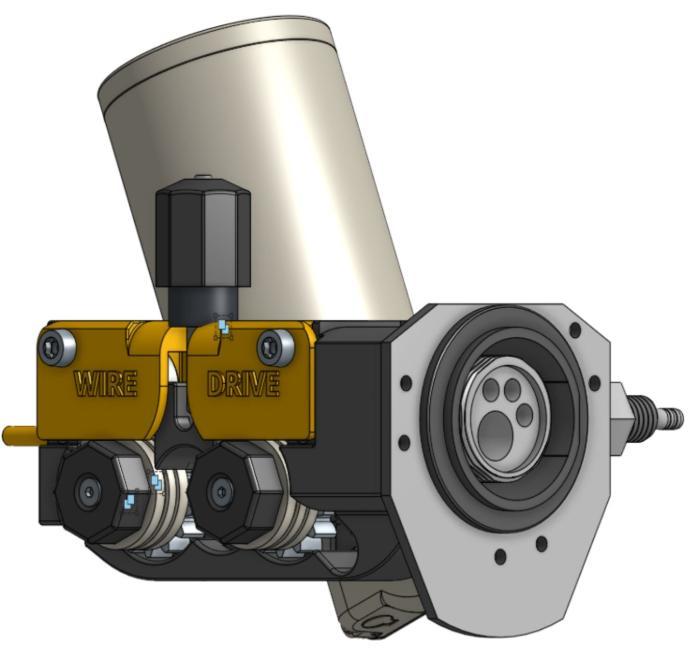 Our straight four rolls drive PolyDrive-TRV-436 is minimized in size and weight and is ideally used in transportable wire feeders or for robot applications.